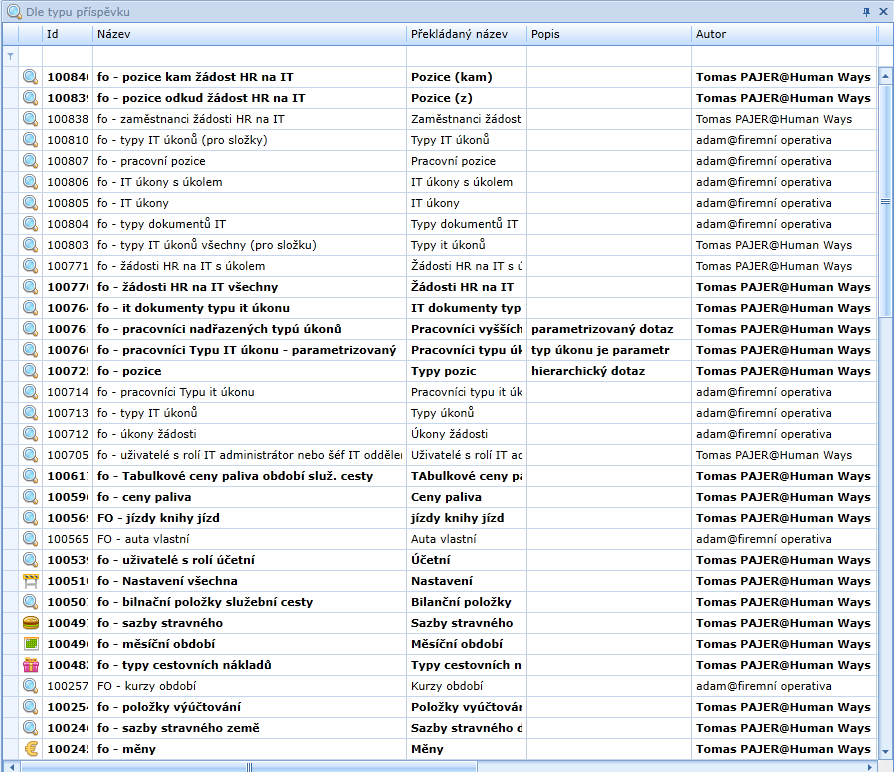 V pravém horním panelu se zobrazí všechny příspěvky hledaného typu Dotaz.