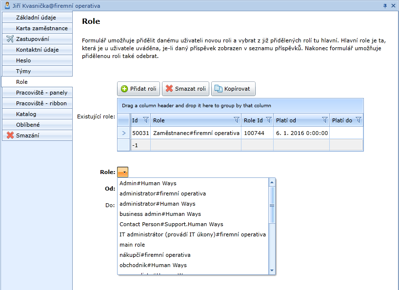 Vzhled pracoviště konkrétního uživatele je dán součtem nastavení, které platí pro: