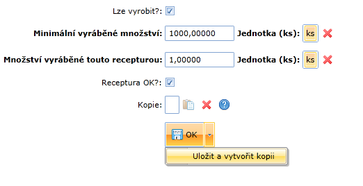 Protože je zakládání receptur namáhavé, je možné si vypomoci u podobných receptur kopírováním.