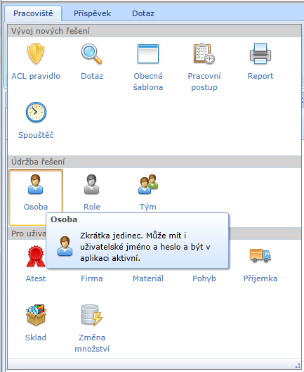 • Správce dokumentace – může ze systému vyndávat vzory tiskových sestav, vytvářet nové verze a zase je do systému vracet.
